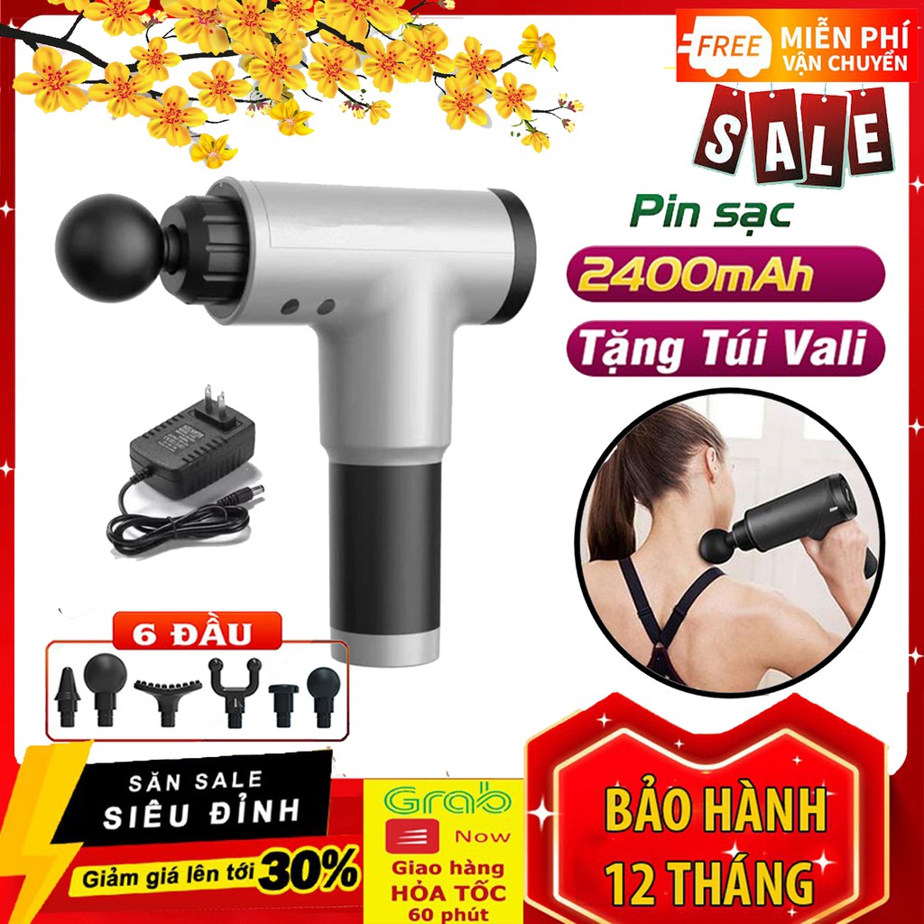 Máy massage cầm tay 4 đầu 6 chế độ - Súng massage toàn thân giảm căng cơ trị nhức mỏi vai gáy HOT free ship